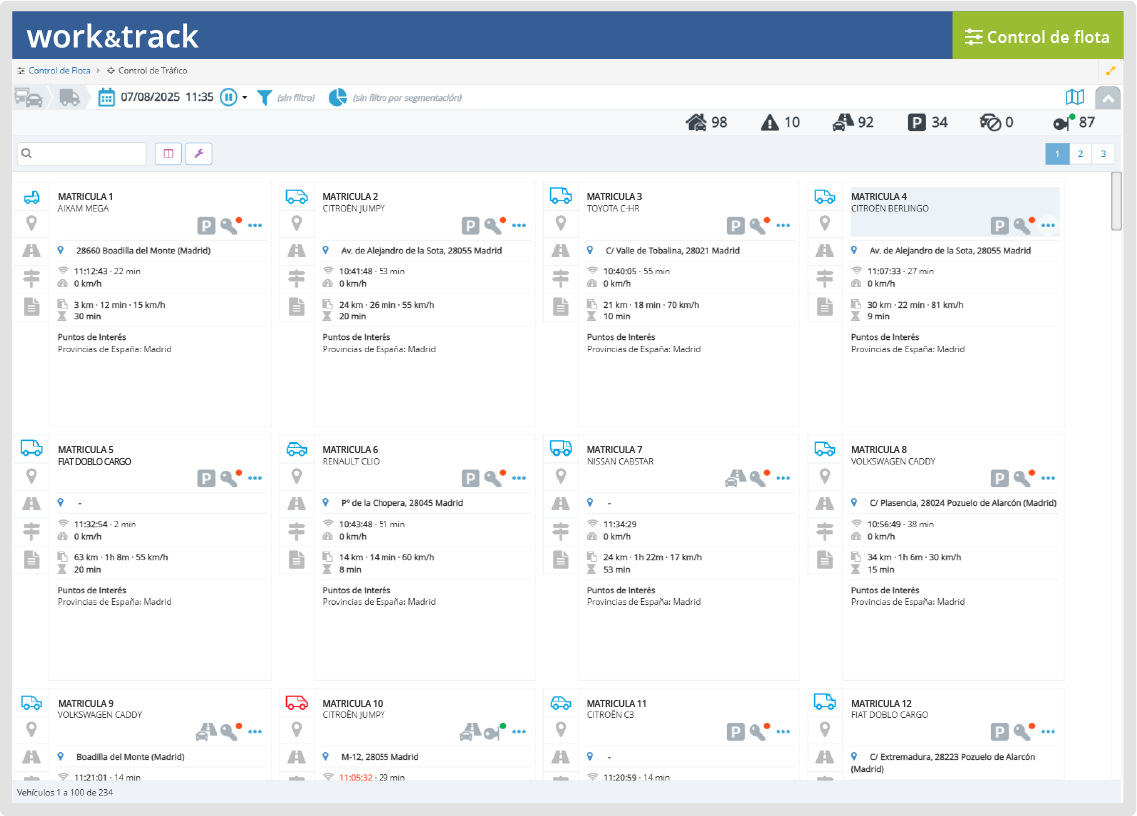 Work&Track Fleet >> Control de actividad y tráfico de vehículos